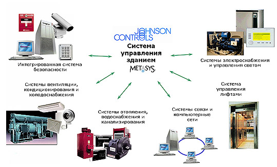 Высоконадежная система управления зданием Metasys компании Johnson Controls представляет собой гибко масштабируемое многоуровневое решение для автоматизации управления инженерными системами здания и интеграции оборудования различных производителей в единую систему. Компания Johnson Controls, Inc. выпускает полный набор периферийных устройств для системы управления зданием, начиная от датчиков и клапанов и заканчивая интеллектуальными контроллерами, осуществляющими управление зданием на разных иерархических уровнях. Различные модификации контроллеров системы управления зданием поддерживают наиболее распространенные коммуникационные протоколы, такие как ставшие промышленным стандартом для систем управления зданием протоколы LonTalk и BACnet. На верхнем уровне управления используется архитектура OPC клиент-сервер, разработанная для интеграции продуктов различных производителей. Система управления зданием Metasys предусматривает и удаленное управление зданием – включенный в состав Metasys программный компонент M-Web предоставляет доступ к средствам диспетчерской станции через стандартный web-браузер.