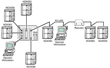 Сеть N1 – это высокопроизводительная локальная сеть уровня управления информацией, которая служит для обмена информацией между контроллерами уровня автоматизации и рабочими станциями диспетчера. При построении сети N1 может использоваться архитектура ARCnet или Ethernet IP (этим определяется выбор активных сетевых устройств). Обе архитектуры допускают такие виды топологий, как шина, звезда, смешанная топология. При выборе Ethernet для создания магистрали можно использовать Fast Ethernet, FDDI (распределенный интерфейс передачи данных по волоконно-оптическим каналам), Token Ring, ATM. Скорость передачи данных – до 155 Мбит/с. Скорость передачи данных по сети ARCnet – до 2,5 Мбит/с.