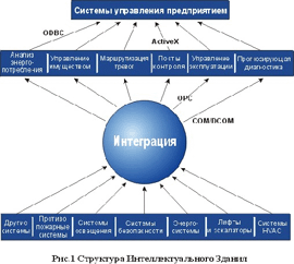 Технические аспекты концепции «Интеллектуальное здание» В сегодняшнее деловое здание устанавливают от 25 до 50 и более разнородных систем жизнеобеспечения, которые отличаются не только назначением и выполняемыми функциями, но и принципами работы: электрические, механические, транспортные, электронные, гидравлические и т.д. Каждая из этих систем поставляется производителем, как правило, в виде комплекта оборудования, на базе которого можно создать законченное решение с собственной системой контроля и управления. Для того чтобы все эти разрозненные инженерные системы работали в едином комплексе, осуществляли между собой обмен данными и контролировались и управлялись из единой диспетчерской, главным звеном интеллектуального здания является система управления зданием (англ.: Building Management System – BMS).