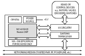 В качестве контроллеров узлов сети LonWorks используются специализированные гибридные микросхемы, получившие название Neuron. Микроконтроллер Neuron содержит три 8-разрядных микропроцессора, объединенных внутренней шиной. Два из них управляют сетевой передачей данных на основе протокола LonTalk, а третий предназначен для обслуживания прикладной части программного обеспечения узла и взаимодействия с внешними устройствами. Синхронизация работы процессоров в составе микросхемы Neuron осуществляется за счет использования общих областей памяти данных. В этом микроконтроллере прошит протокол LonTalk, в соответствии с которым осуществляется обмен данными и управление в сети LonWorks. Neuron обеспечивает выполнение первых шести уровней модели OSI, а уровень приложений и предоставления данных определяется прикладным ПО, за работу которого отвечает процессор прикладного уровня.